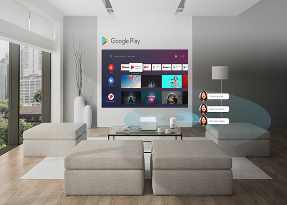 Powered by Google’s Android TV™, the moment you power-on the EF-100, you’re ready to use all your favorite streaming apps.