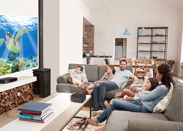 High brightness and remarkable image quality make it easy to enjoy widescreen adventures in any setting—no matter whether the room is dark or bright. Watch your favourite movies and TV shows and enjoy the big screen experience, right at home.
